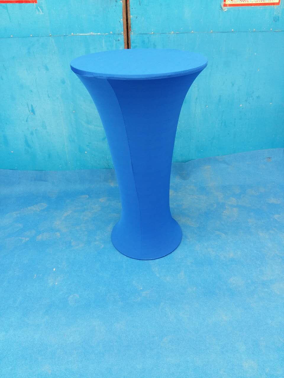 吧桌配蓝色弹力桌布